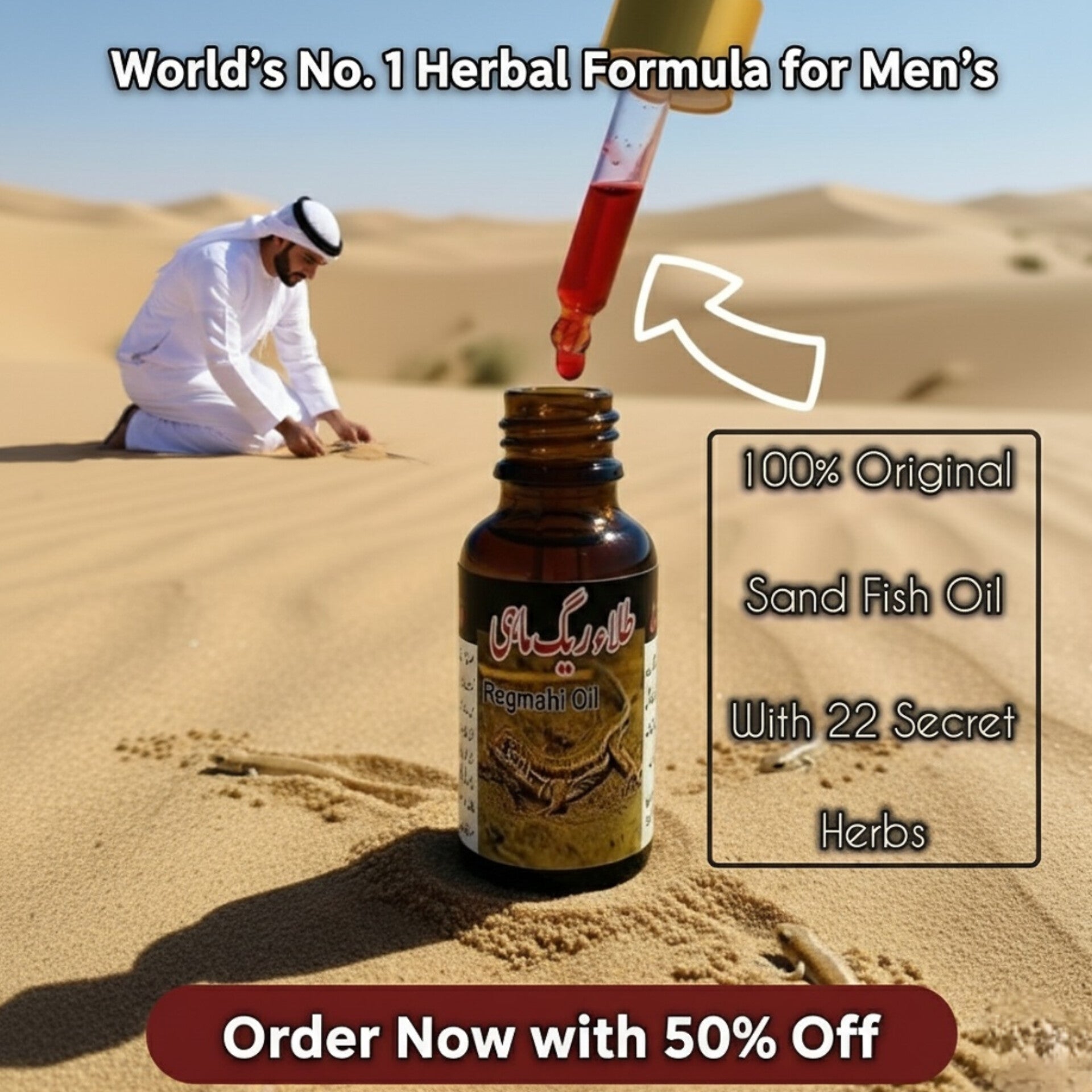 ریگ ماہی آئل جسے ڈیزرٹ فش آئل بھی کہا جاتا ہے، صدیوں سے عربی روایات میں استعمال ہونے والا ایک مشہور قدرتی نسخہ ہے۔ یہ آئل قدرتی ریگستانی مچھلی کے تیل اور جڑی بوٹیوں کے امتزاج سے تیار کیا جاتا ہے، جو طاقت، توانائی اور اعتماد کو بڑھانے کے لیے جانا جاتا ہے۔